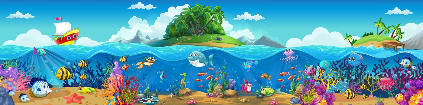 Фрески на стену детские, море, небо, aртикул: 6274 подводный мир 2